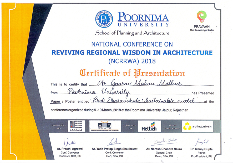 Ar. Gaurav Mohan Mathur has presented a paper on Conservation of Badi Dharamshala, Karauli